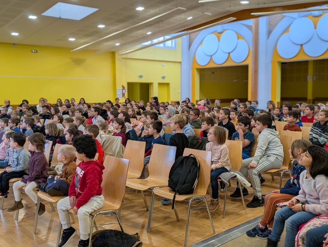 le lundi 17 novembre, les élèves des classes de Grande Section, de GS/CP, de CP et de CE1 ont participé à la journée de lutte contre le Harcèlement. C’est un temps dans le cadre du programme pHARe où il est demandé de sensibiliser les enfants aux notions de vivre ensemble. Ce lundi, les élèves des 4 classes ont été mélangés et répartis en 10 groupes de 8 ou 9 enfants. Ils ont pu échanger, s’exprimer plus facilement autour de ce thème : mettre des mots sur ses ressentis, ses émotions, chercher ensemble des solutions face à un souci. Le tout à partir de support varié comme des vidéos, des albums, des affiches.