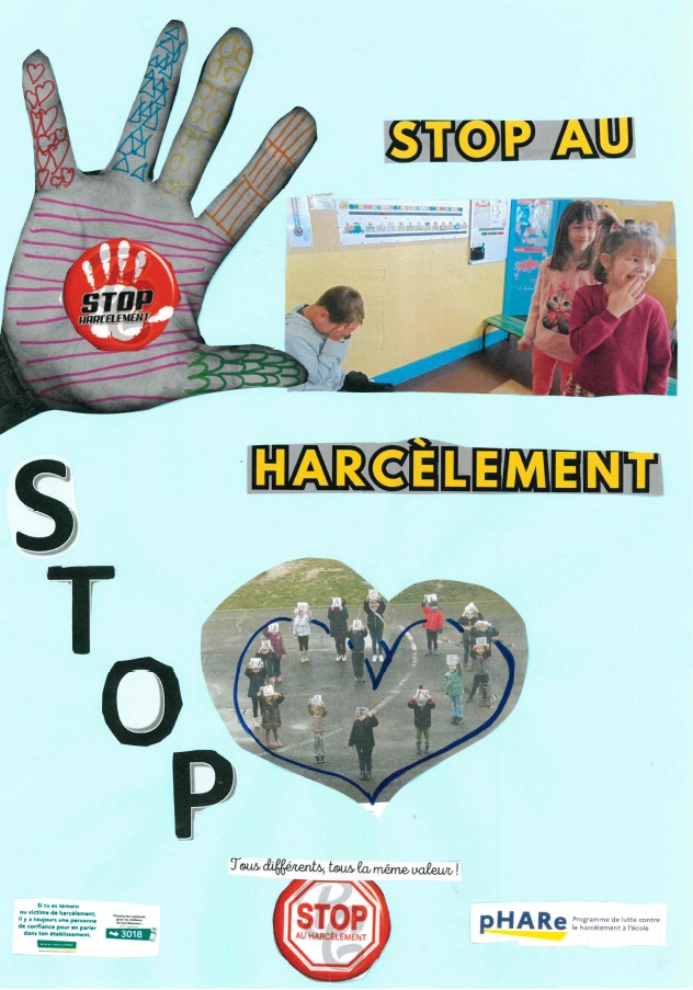 Une des 3 affiches sera choisie pour notre participation au concours d’affiches pour le prix « Non au HARCÈLEMENT »