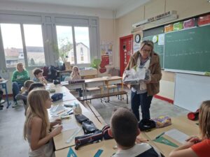 Tirage au sort par les délégués citoyens pour que 2 classes se retrouvent pour fêter la fin de la période. C’est autour d’un goûter que les échanges se font ! Un peu de musique, faire plaisir à l’autre en lui offrant un objet confectionné pour lui, échanger, partager : VIVRE ENSEMBLE !
